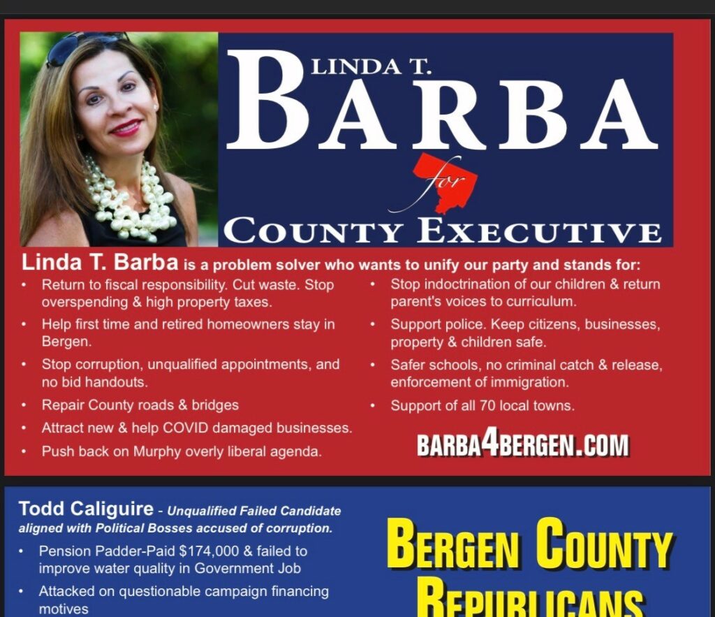 What an absolute joke! Pallotta has name recognition as a loser, gottheimer pounced on him in 2020! He was voted out of the county committee officially elected line because of his self- absorbed ways! He and his staff refer to me as 'rancid meat' which was posted on Barba's own Facebook wall for over a month not only proving that Pallotta & his team are misogynists, but that she is completely in tune with their way of thinking against women- how embarrassing to pretend she stands for women! They say Hell hath no fury like a woman scorned oh, and she is living proof. She also has zero experience except for reviewing restaurants which undoubtedly makes her an unqualified candidate for County Executive! They lost fair and square by overwhelming numbers, it wasn't even close. To insult all of the county committee members like that will only be proven on Tuesday when she is voted out, along with the rest of the ridiculous slate that was put together by none other than the Mahwah Misfit! Any good and real Republican, will be voting for column 2 and not because anybody told them to, but because they know who are the best people to take on the November Democrats.