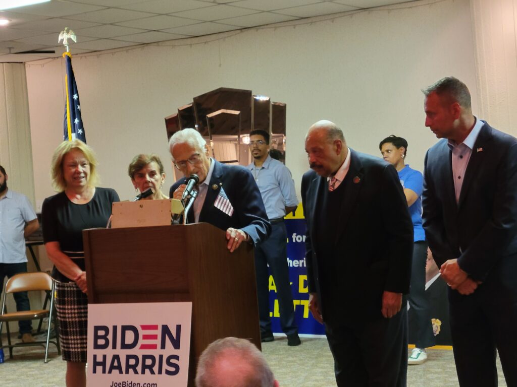 Congressman Pascrell, a long-time veteran of the Paterson, Passaic County, and federal political arena, also thanked the party organization. Pascrell emphasized the power of unity within the party, underscoring the tensions between the Adamo and Speziale aligned factions which must now be reconciled. “There are no small fish here,” the congressman said, “We did the job and stick together. We will have a new sheriff, a new commissioner, and will return Sandi and John. Without you, we don’t win.”