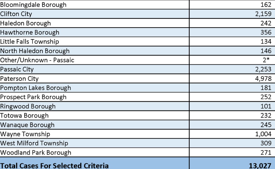 Paterson has 4,978 cases, while Clifton has 2,159 cases and Passaic has 2,253 cases.