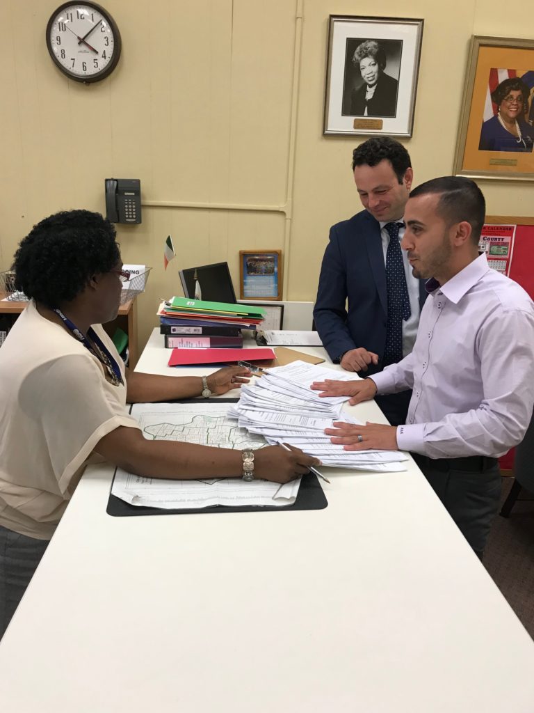 Ahead of a special election for the soon-to-be-vacated 6th Ward council seat in Paterson, Arab community leader and Democratic Municipal Co-Chair Al Abdelaziz filed over 750 petition signatures with the clerk's office today, flanked by ally and Mayor-elect Andre Sayegh.