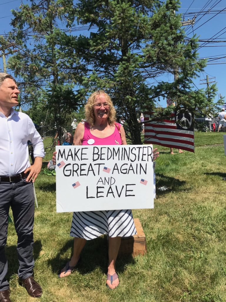 Somerset County Democratic Committee Chair Peg Schaffer welcomed President Donald J. Trump back to New Jersey this afternoon at a rally protesting the President's family separation policy.