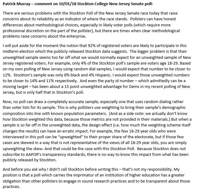 I do not make this comment on the Stockton poll lightly. But I feel this practice can undermine the credibility of the good work done not only by Monmouth, but also Marist, Siena, Quinnipiac, Eagleton, FDU, etc. pic.twitter.com/6jVxt51zLG