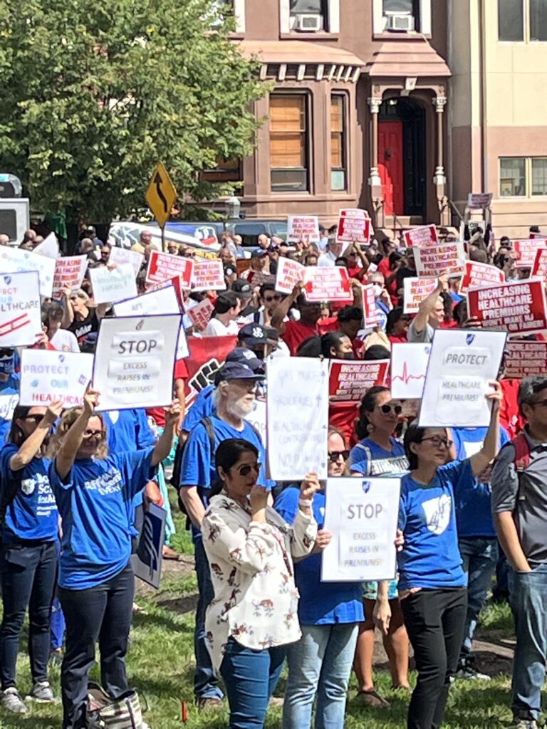 TRENTON - On Tuesday, hundreds, if not thousands, of public workers crowded around the Statehouse to chant, to wave signs and to condemn plans to raise their 2023 health insurance contributions in some cases by more than 20 percent.