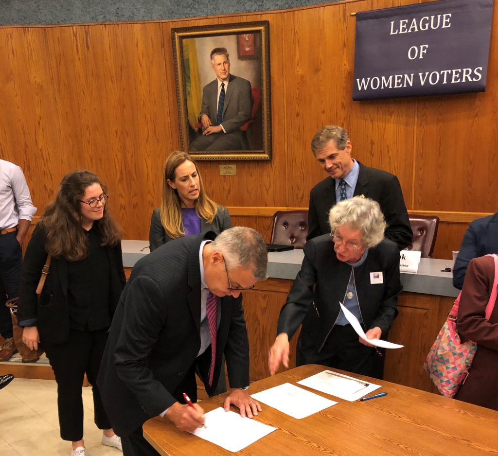 Sherrill, who already had spoken on guns, was asked a question about climate change.