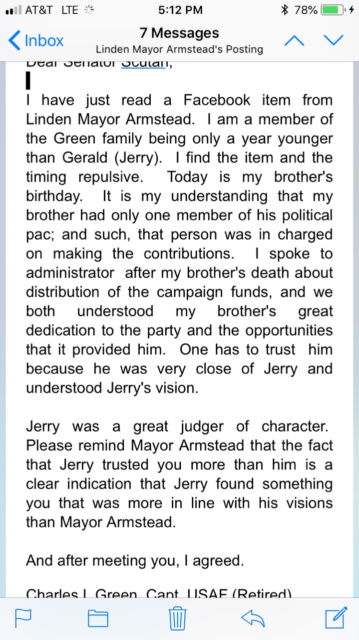Senator Ronald Rice Supports Linden Mayor Derek Armstead’s Objections to Use of Jerry Green's Campaign Funds