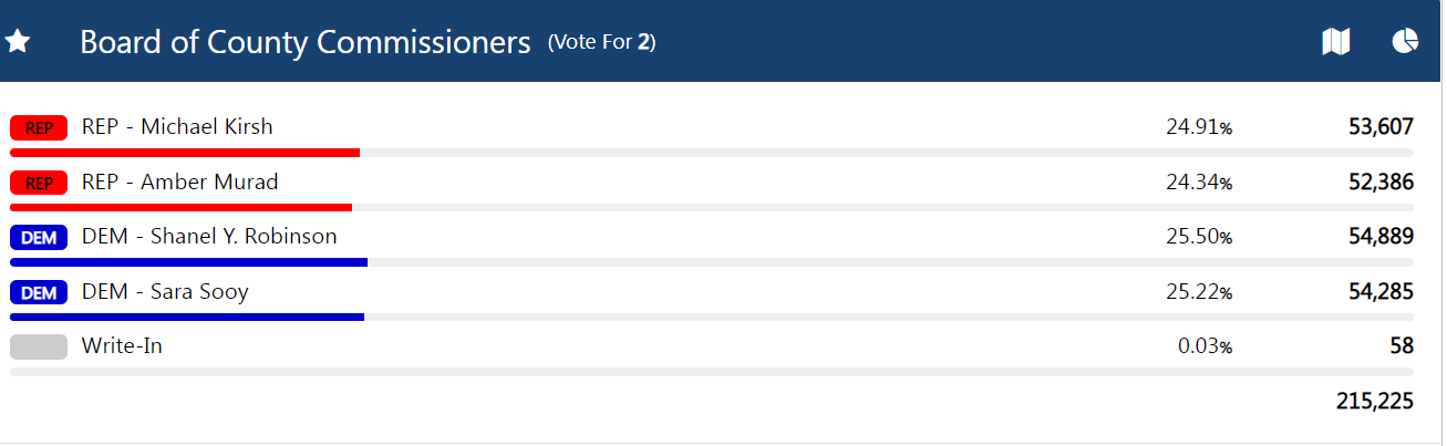 Kirsh's running mate, Murad, was bunched in a pack with incumbent Democrats Robinson and Sooy, in a race that was too close to call.
