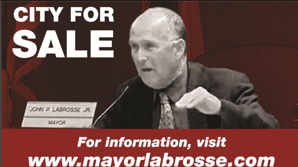 The city, the piece asserts, under Labrosse's leadership, is for sale.