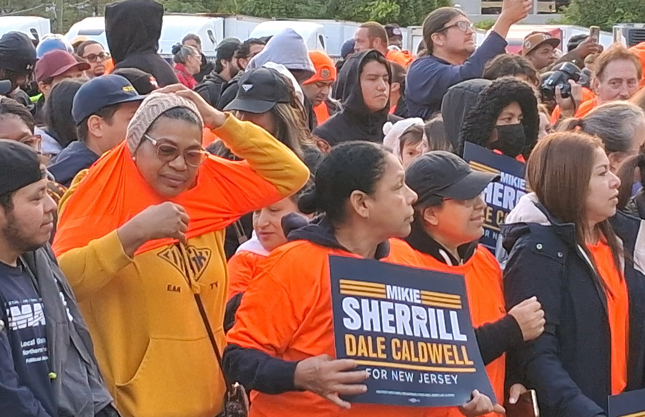 "Union rights are on the ballot," said Sherrill. "The fight for PLAs is on the ballot. The fight for collective bargaining is on the ballot. The fight for your wages is on the ballot. The fight for your families is on the ballot in New Jersey."