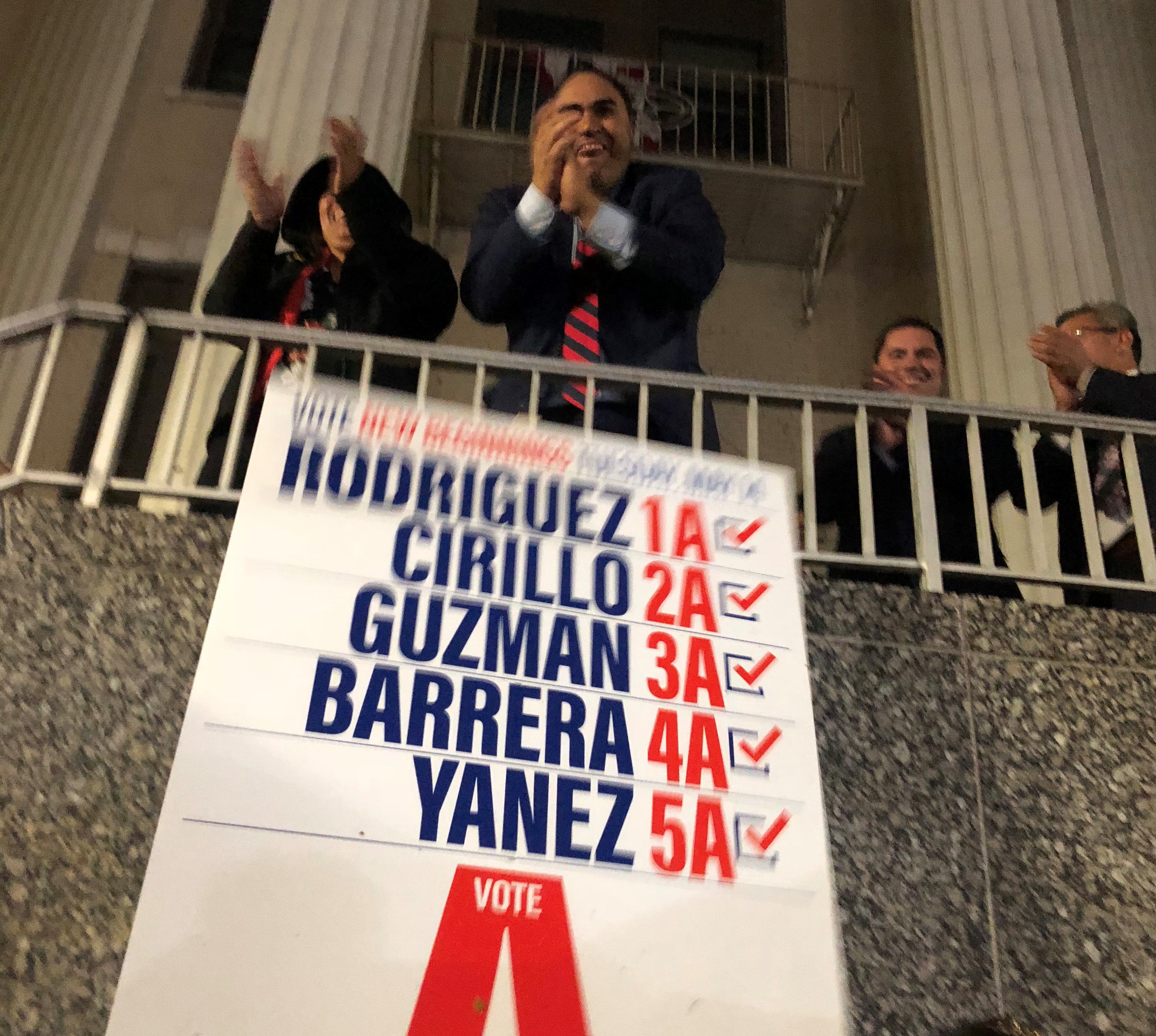 At town hall, more than a hundred people stood in front of the historic building’s imposing steps awaiting the appearance of mayor to be Gabe Rodriguez.