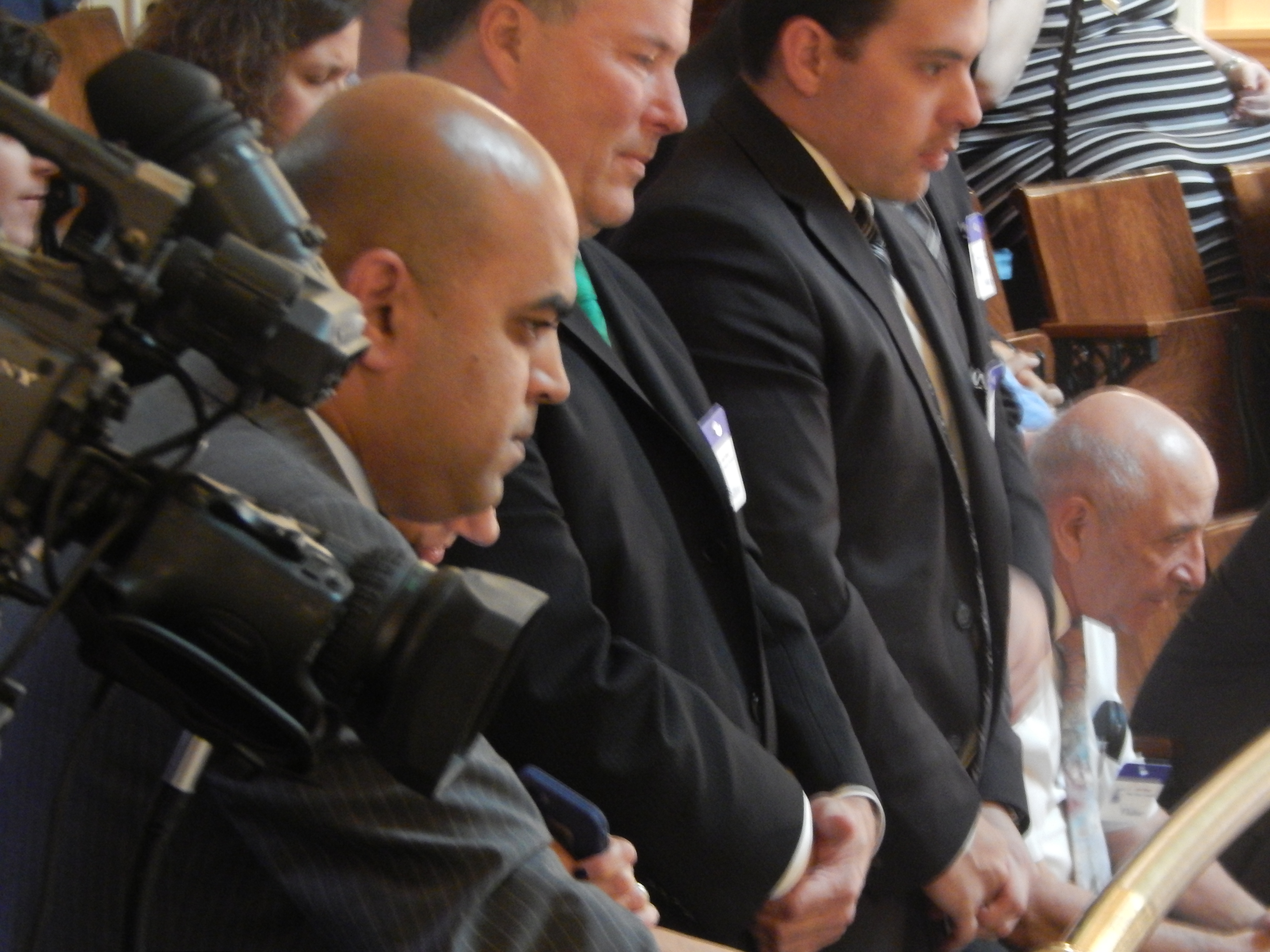 InsiderNJ caught up with former Governor Dick Codey as he sauntered down the marble staircase to make his entrance into the session just moments before Corrado and Bell got sworn in by Sweeney. "I'm not bitter," he said cheerily, the apparent imminent victory of Murphy dancing like sugar plum fairies in the Irish American's eyes.