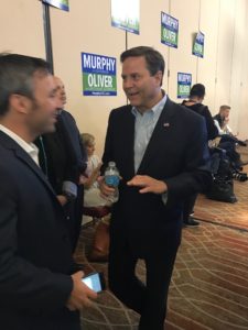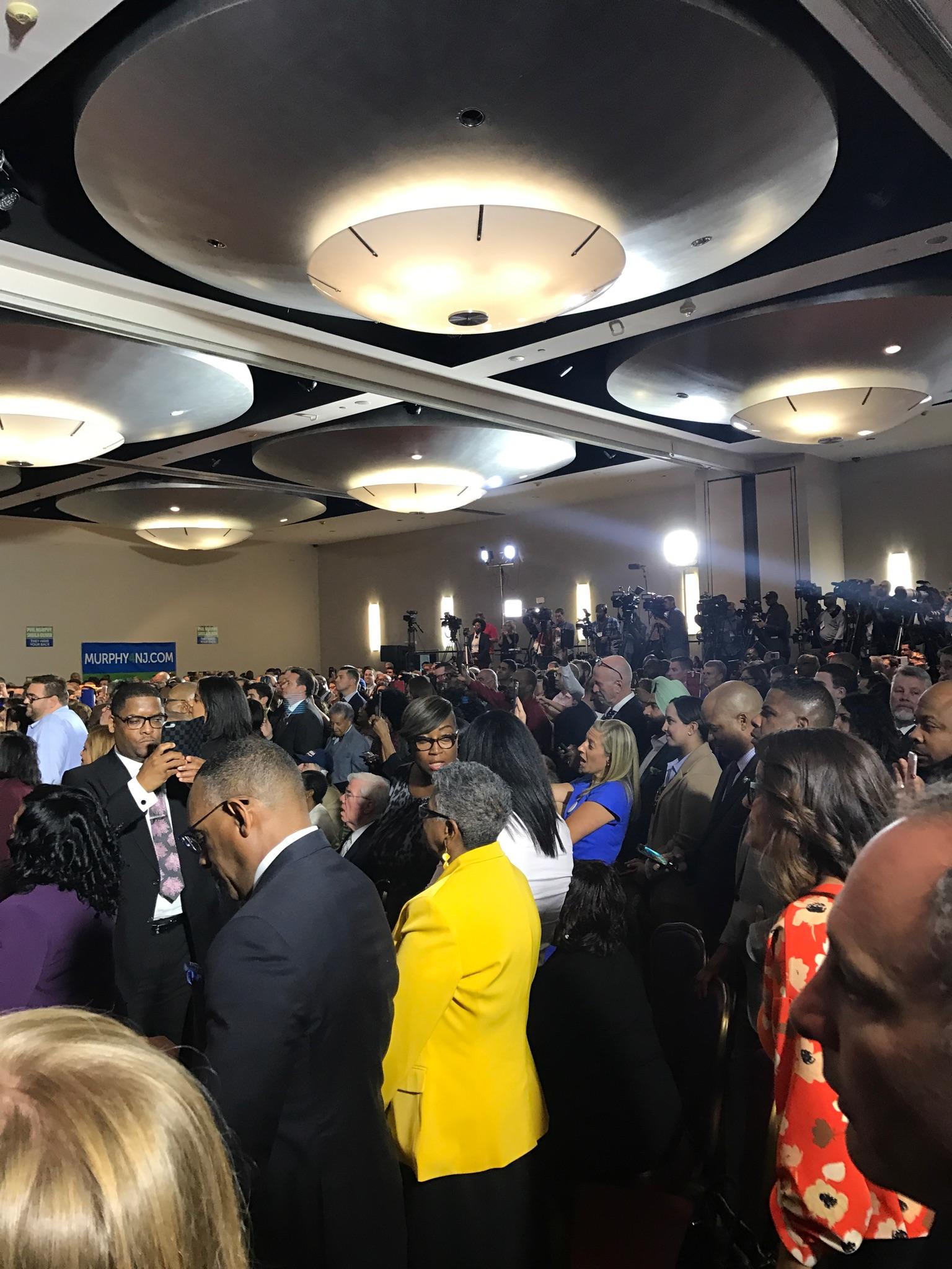 Seen in the room: U.S. Rep. Donald Norcross (D-1), Essex County Executive Joe DiVincenzo and his chief of staff Phil Alagia, Essex County Clerk Chris Durkin, Assemblyman (and candidate for Speaker) Craig Coughlin (D-19), Assemblywoman Eliana Pintor Marin (D-29), Murphy Campaign Manager (and Essex Freeholder) Brendan Gill, Somerset County Democratic Committee Chair Peg Schaffer, and Essex County Freeholder Len Luciano.