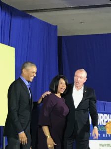 Murphy's candidate for lieutenant governor, Assemblywoman Sheila Oliver (D-34), joined Obama and Murphy onstage.