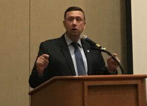 ATLANTIC CITY - The battleground commander of his lower house legions looking to build on a super majority, Speaker Craig Coughlin (D-19) made his sedate case for himself and Democrats in Trenton against President Donald J. Trump and Republicans in Washington.