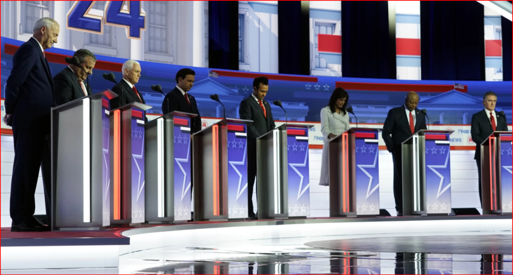 An abortion debate between seven men – with the only woman on the stage, Nikki Haley, suggesting a *relatively* less extremist compromise, only to get labeled an evil coward by the Jesus guy.