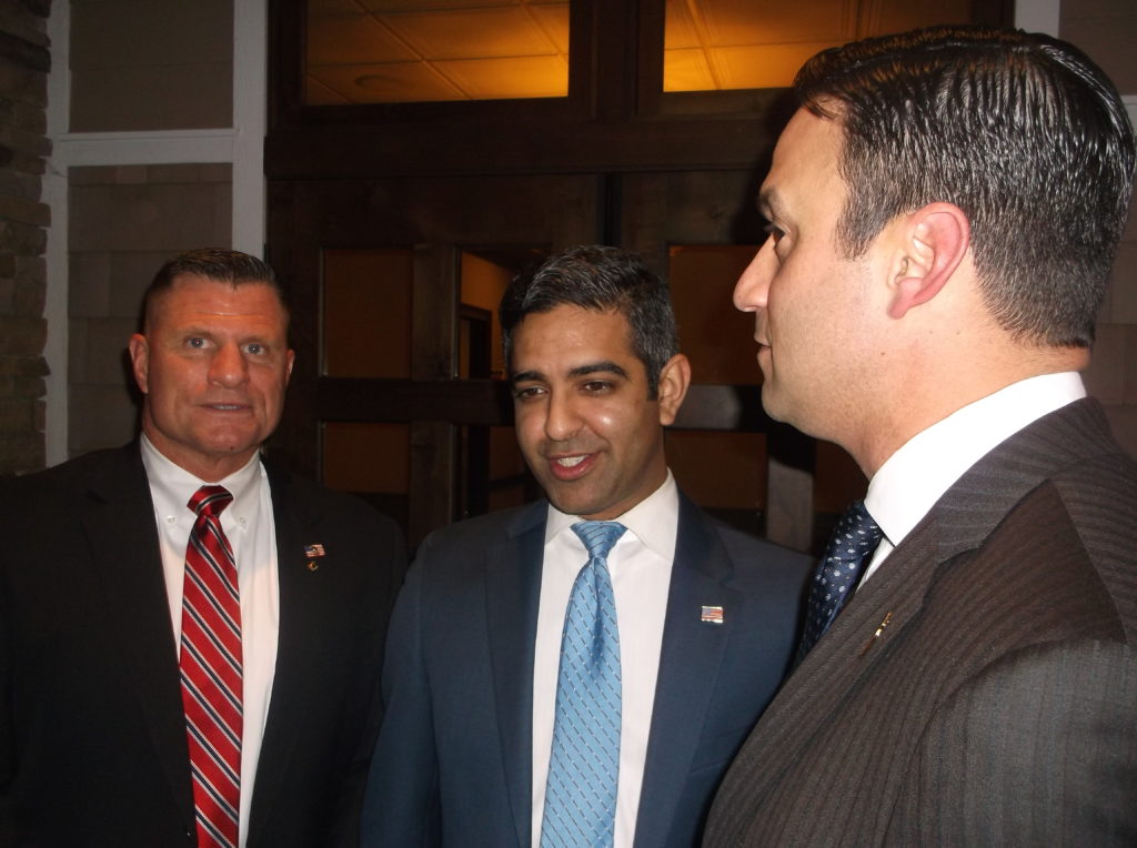 "He has the resources and we need to unite behind him," Toto (pictured above, far left, with Singh, center and Cumberland GOP Chairman Mike Testa, Jr.) told the crowd here at the Atlantic City Country Club.