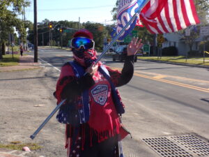 "Why don't you have any American flags over there?" one Trump supporter yelled amid a blizzard of red, white and blue at the Biden backers, whose heraldry included at least two American flags tossed among other cause colors.