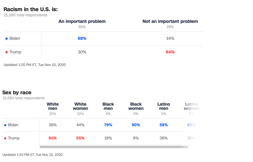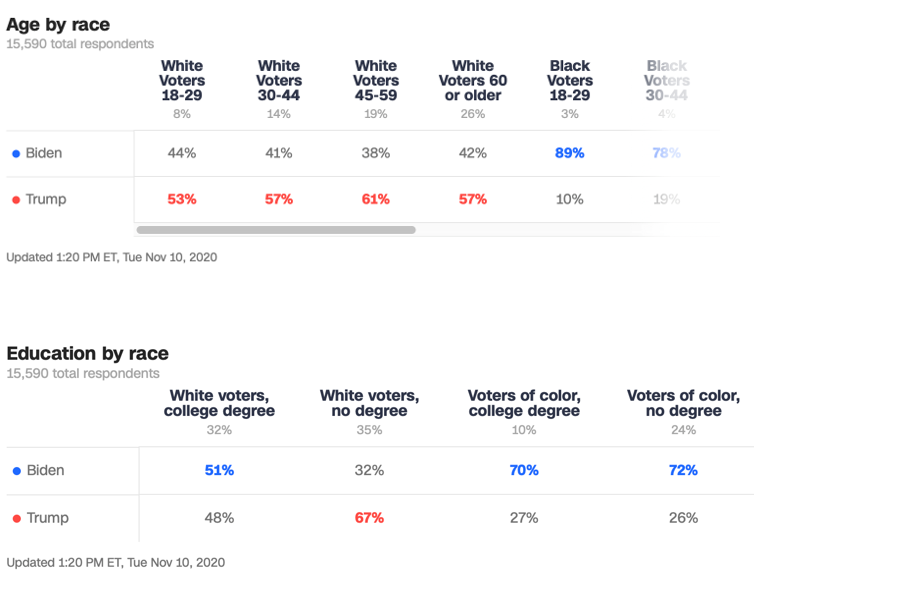 See: https://www.cnn.com/election/2020/exit-polls/president/national-results
