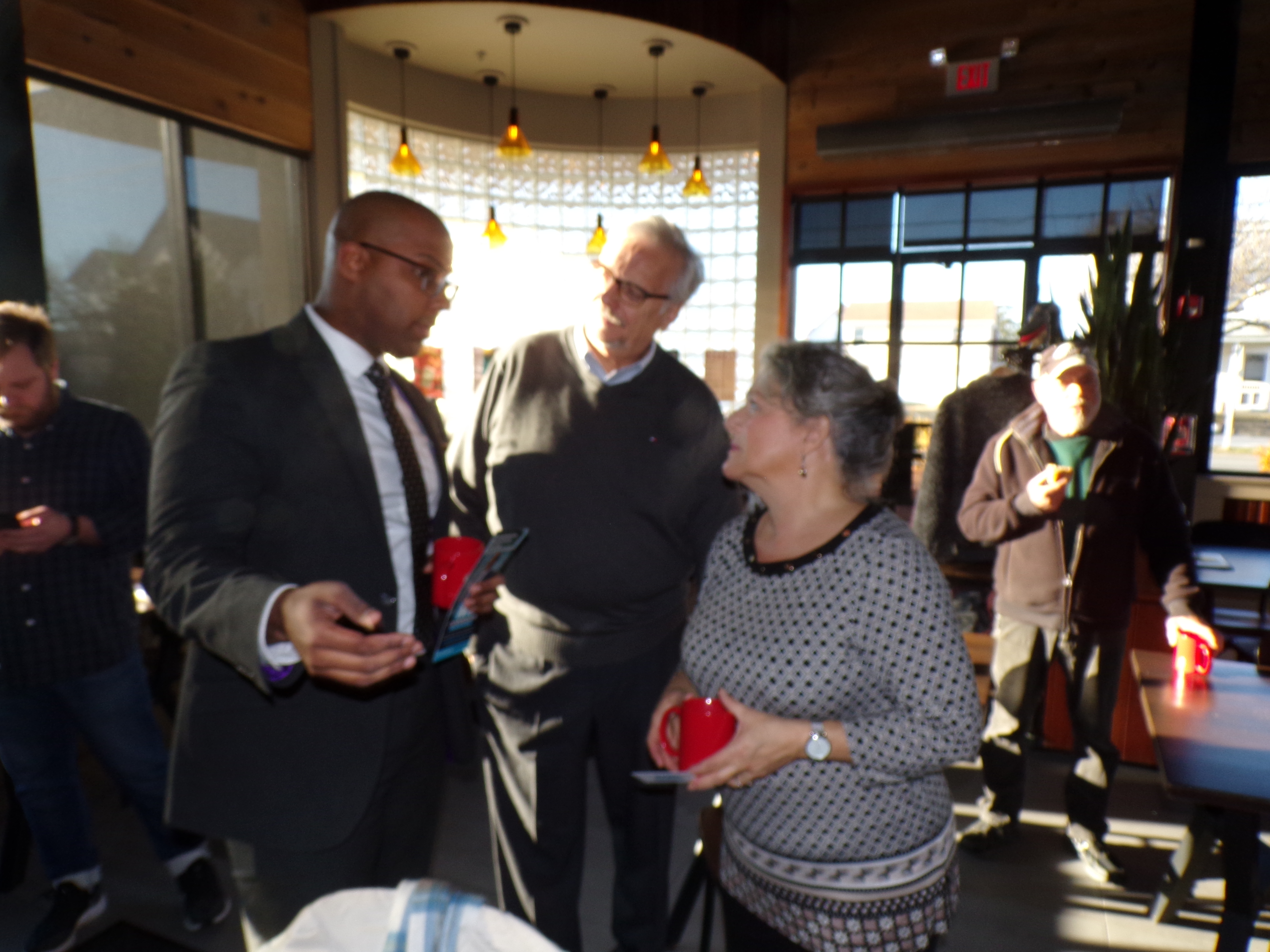 While the candidates hobnobbed, Cassandra Gatelein and Shayla Woolfort of Indivisible discussed the developing contest in CD2. They're the chapter co-chairs here of the progressive organization that backs social, reproductive and environmental justice. Indivisible was primarily responsible for organizing the counter rally when Trump came to Wildwood on January 28th.