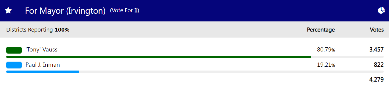 The leader of Team Irvington Strong commanded a sweep in the Essex County town.