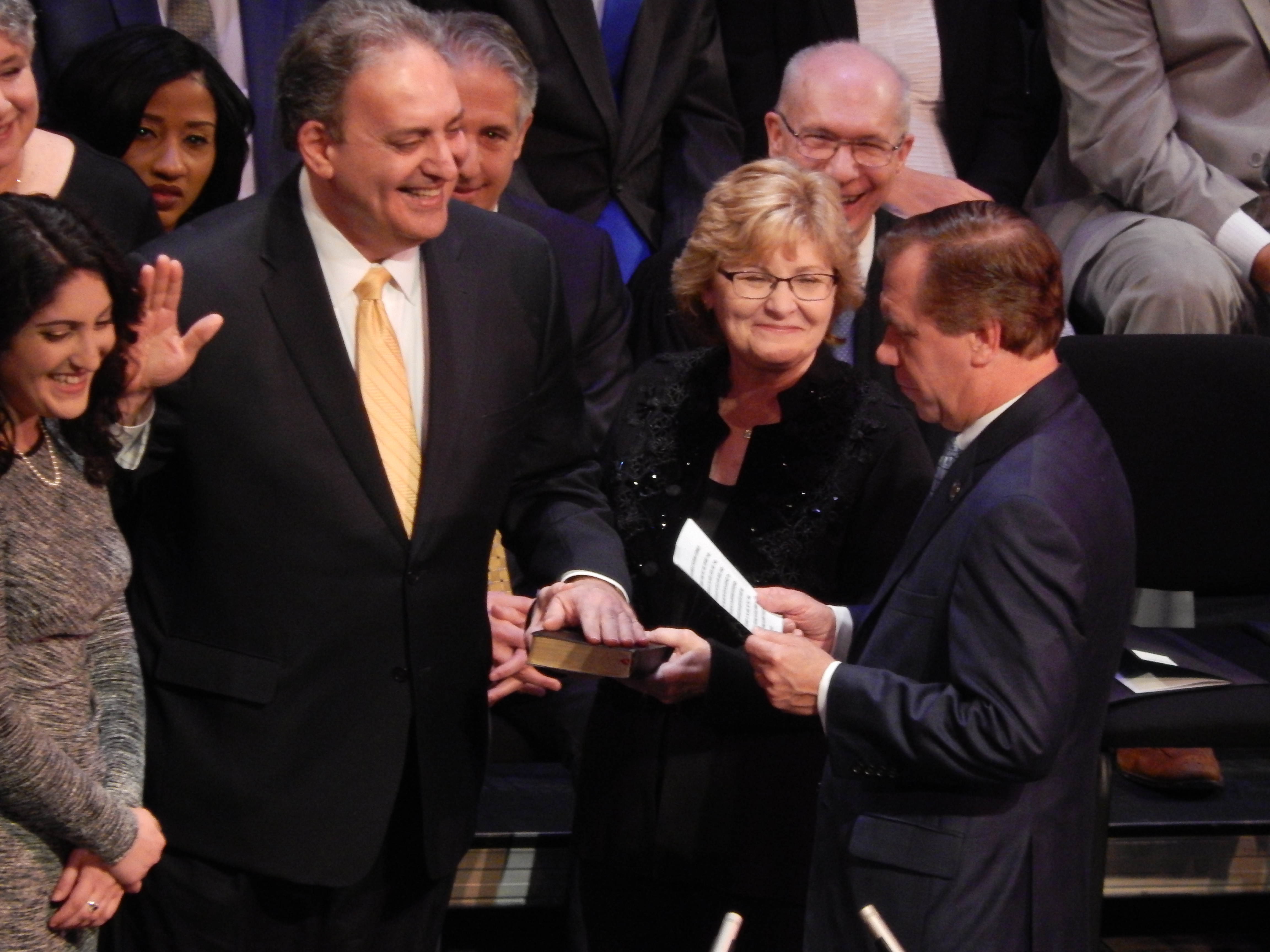 Assemblyman Roy Freiman (D-16) of Hillsborough assumes the oath of office.