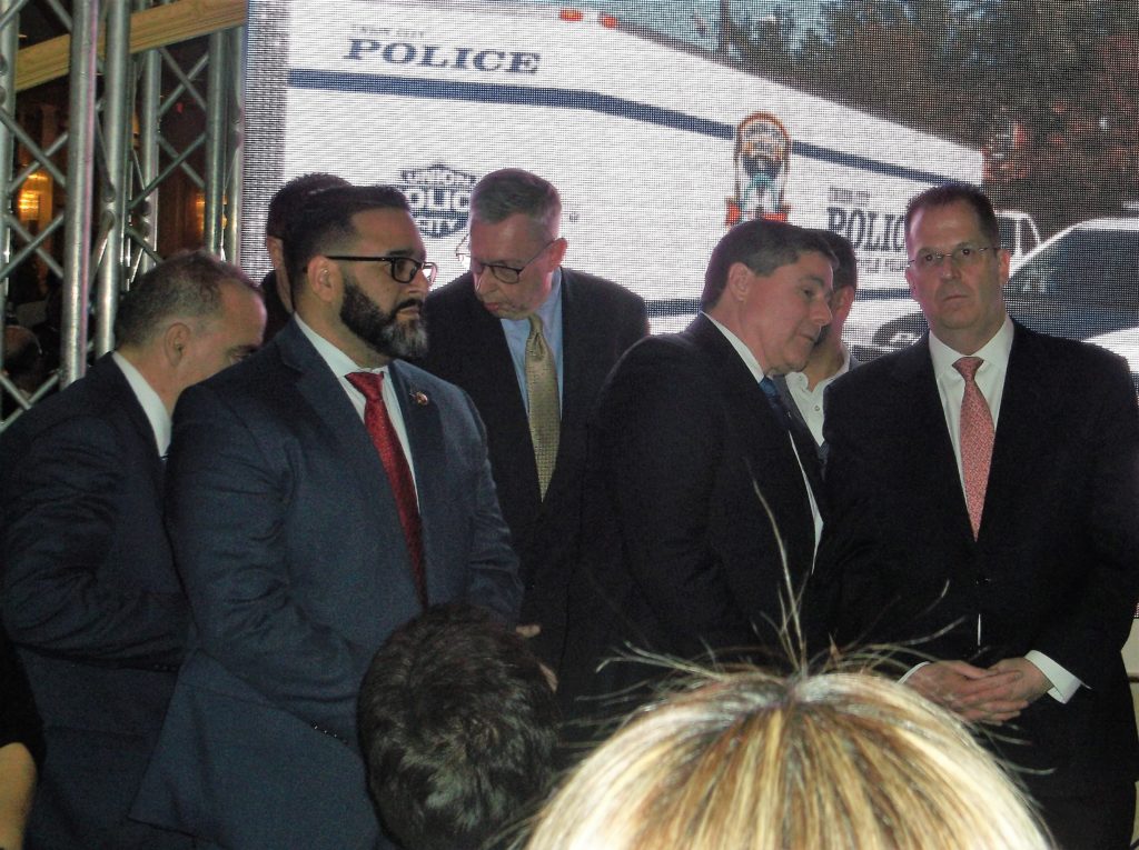 MOONACHIE - They stood at the front of the ballroom like Magnificent Seven cast members, with Mayor Brian P. Stack assuming the Yul Brynner role as head of the humble public-protecting outfit.
