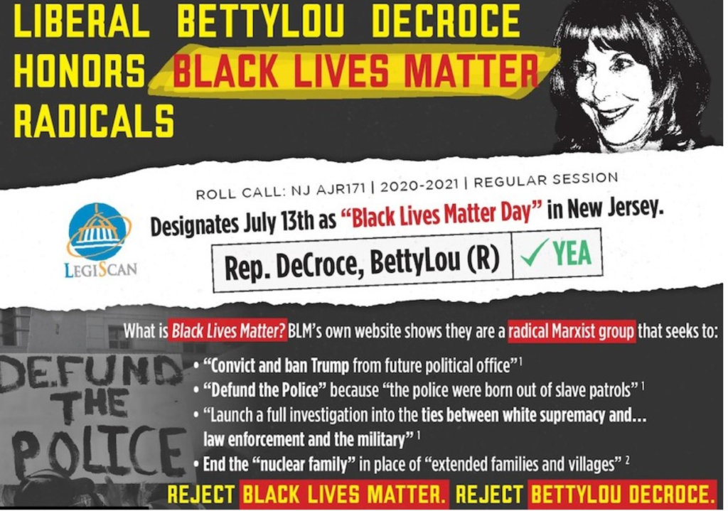 In a sure sign the GOP Assembly battle in LD-26 is careening into never-never land, DeCroce is being portrayed as a certified left-winger who "honors Black Lives Matter radicals."