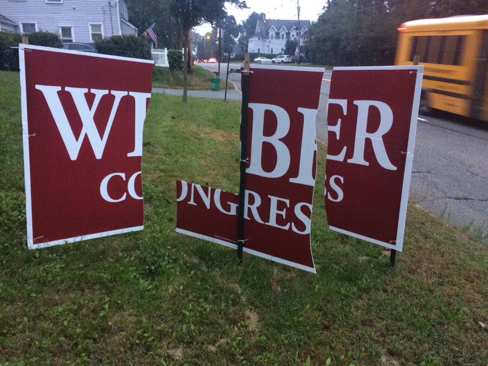 "Just look at what they did to this #WebberForCongress sign on a friend’s lawn. Don’t retaliate! I encourage you to respond by putting up more signs & volunteering for our campaign. Let's win this the right way & work together to make #NJ11 better for everyone."
