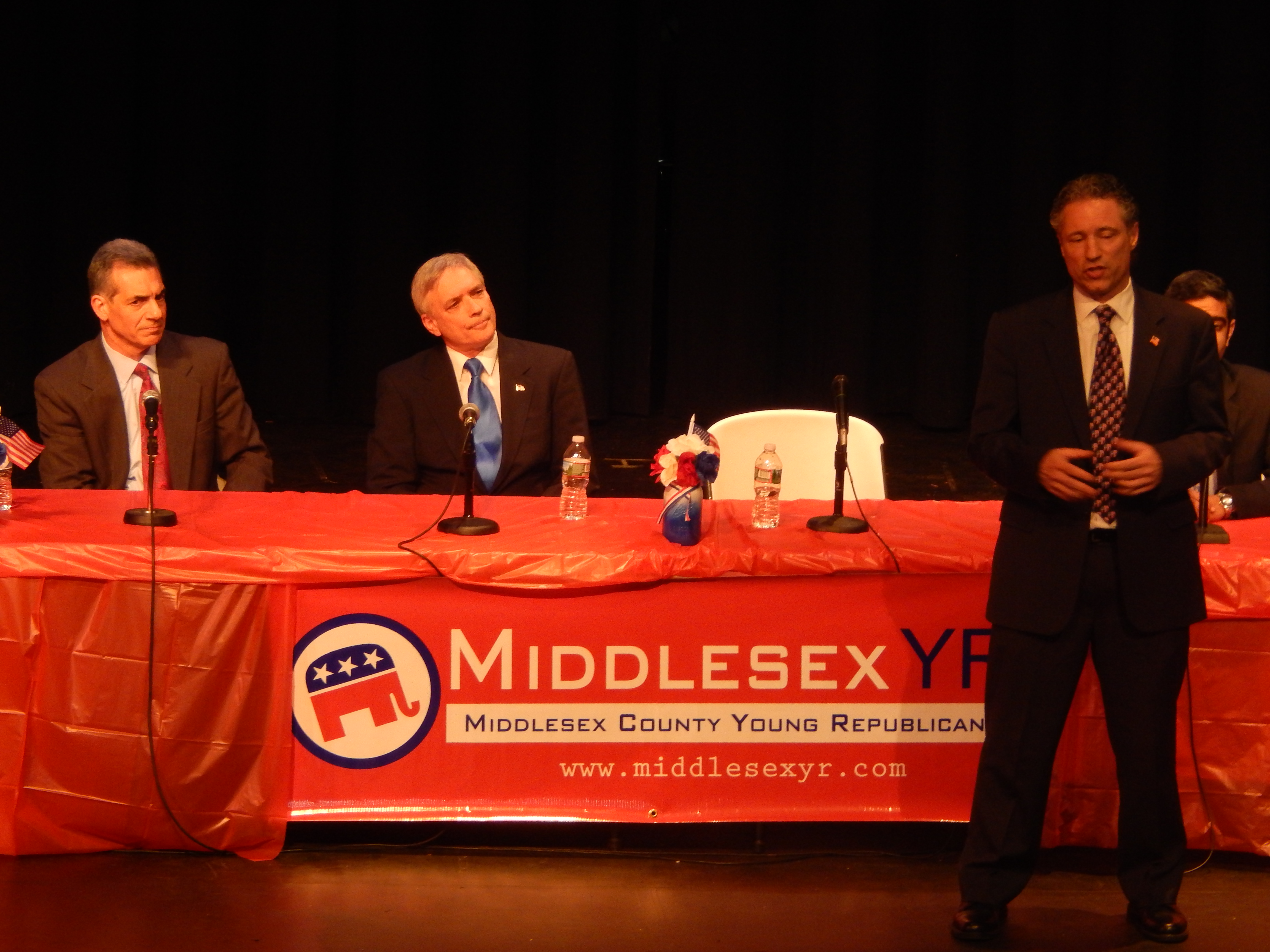 Inside, we are here with the four Republican gubernatorial hopefuls at this debate tonight sponsored by the Middlesex County Young Republicans, where the presence of Assemblyman Jack Ciattarelli (R-16) and the absence of Lieutenant Governor Kim Guadagno made Ciattarelli the resident Trenton target of the other three candidates.
