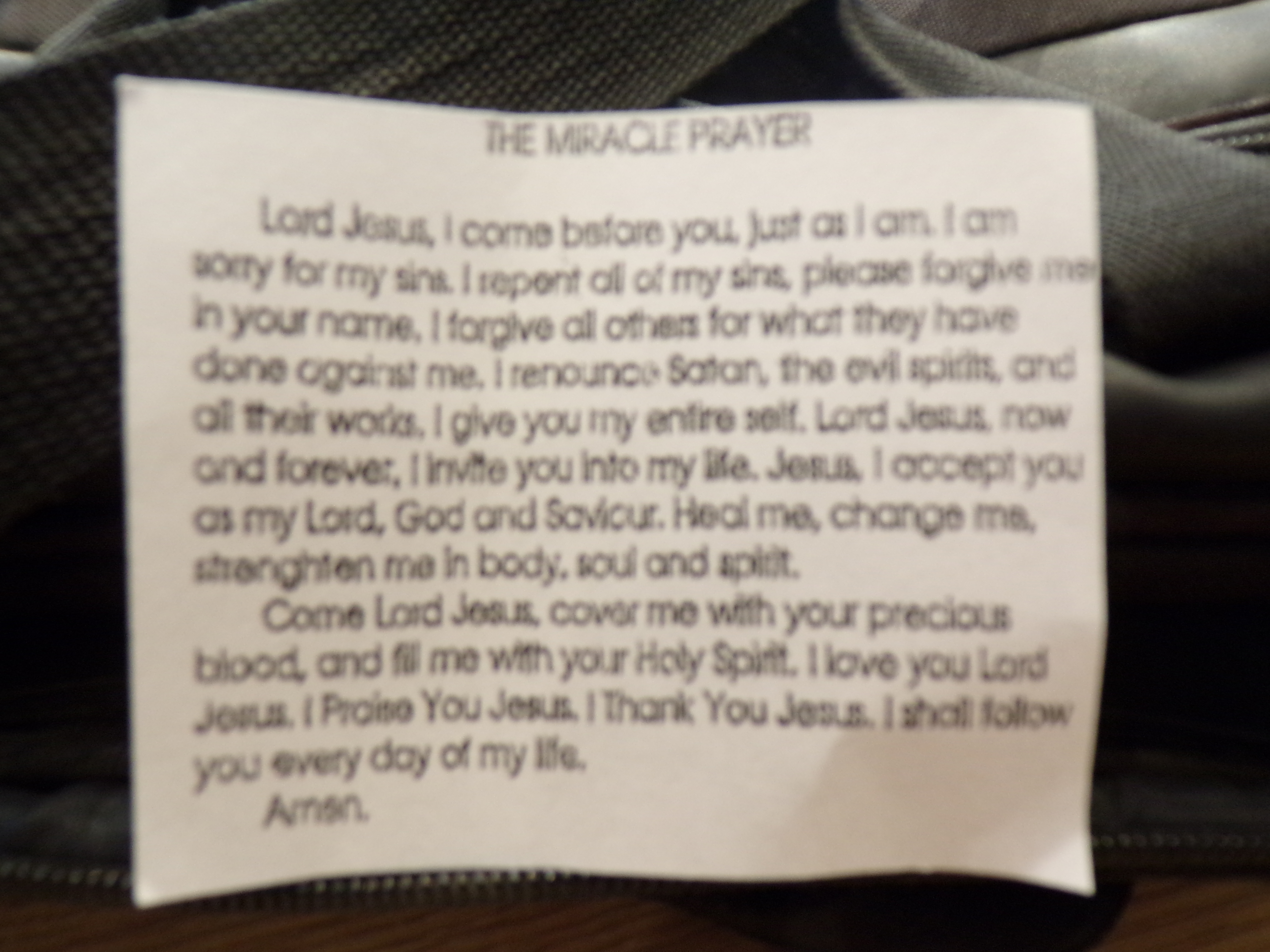 It was the same "Miracle Prayer" shared by the woman on the boardwalk.