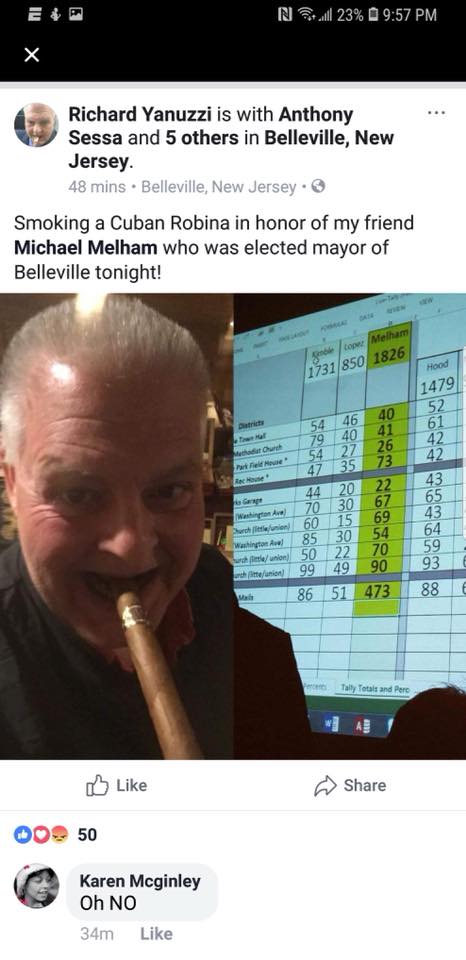 Yanuzzi's Cigar-chomping Facebook Victory Lap in Belleville - Condemned by Campaign Spokesman
